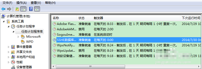 4、右键我的电脑:管理——任务计划程序——任务计划程序库,可以看到刚才添加进去的定时任务