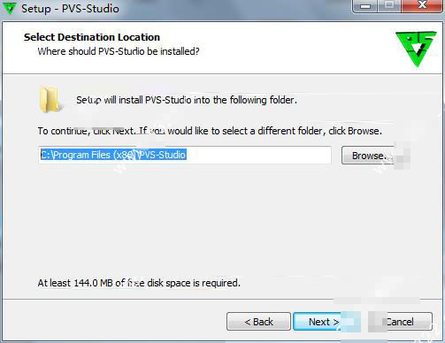 4、选择PVS-Studio的安装路径,默认路径为C:\Program Files (x86)\PVS-Studio(为了方便接下来的破解,不建议更改),可点击Browse更换路径或直接默认点击Next