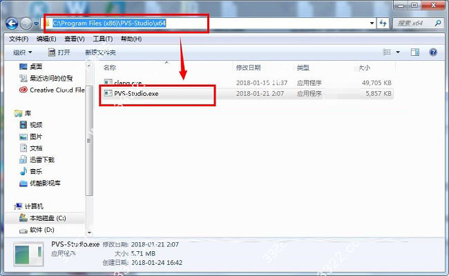 1、回到安装包,进入Crack文件夹,将“PVS-Studio.exe”文件复制到PVS-Studio的安装路径中的“x64”或“x86”文件夹中(用户需根据自己的操作系统选择,64位就进入“x64”文件夹,32位就进入“x86”文件夹),默认路径在C:\Program Files (x86)\PVS-Studio
