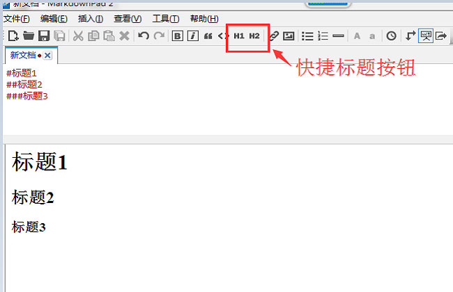 #代表1号标题,##代表2号标题,###代表3号标题,依次类推,必须顶格写才有效。也可以通过点击工具栏中的标题图标快速获取。