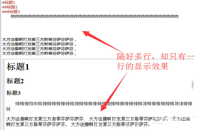 4、段与段之间的换行:无论空几行,都只有一行的换行显示效果。