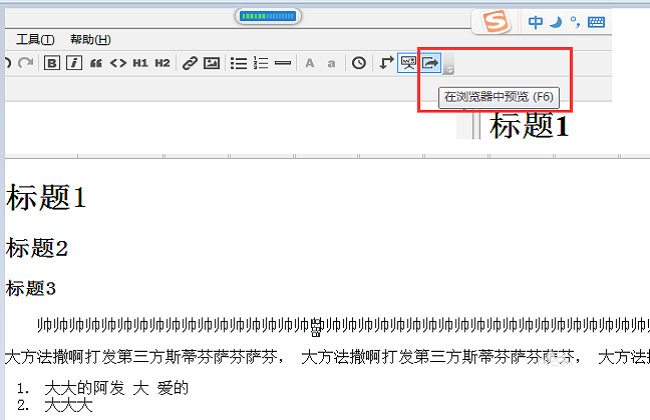 10、基本上一篇文章涉及到上面的东西也差不多了。写完后如果想看它在浏览器中的显示效果。可以选择在浏览器上预览。查看显示效果,觉得效果不错那你就可以使用它了。