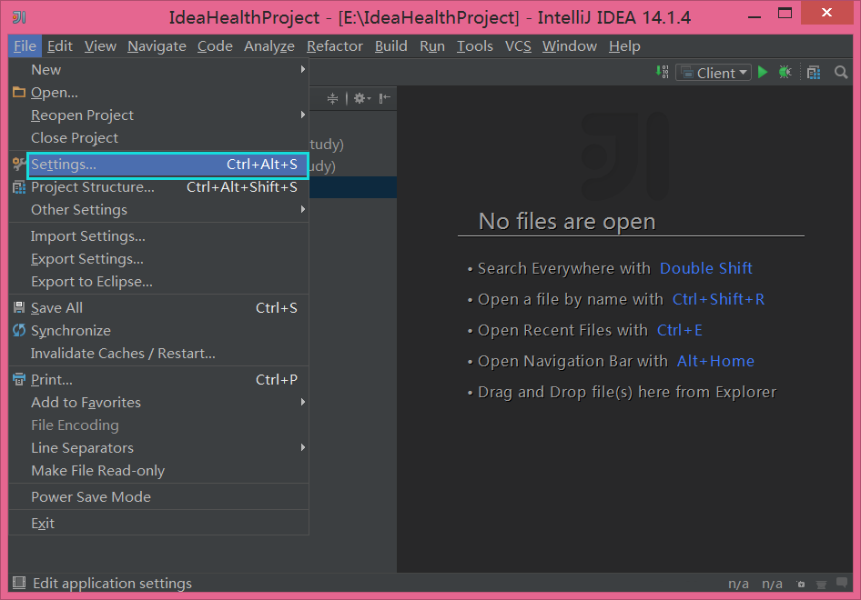 1、首先打开IDEA之后,点击任务栏的“File”。