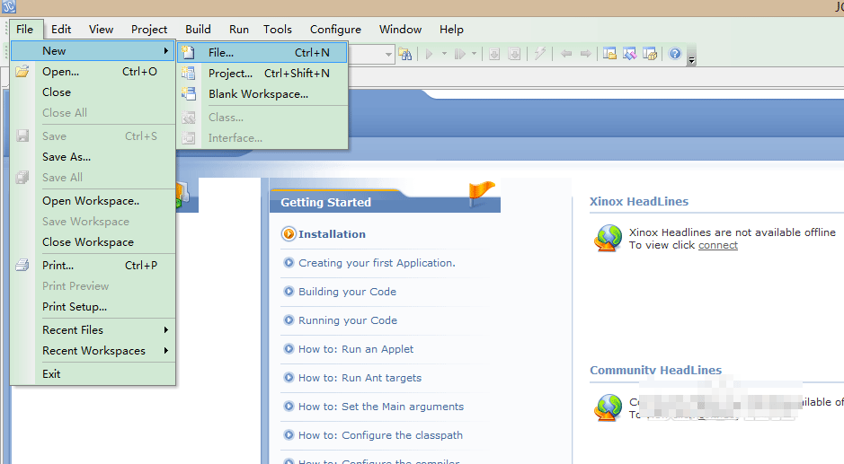 第二步,点击File,弹出复选框,然后点击复选框的New,或者直接按Ctrl+N键