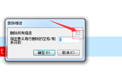 5、然后就会弹出了一个为删除缩进的窗口的界面当中,进行勾选上“删除所有缩进”选项。
