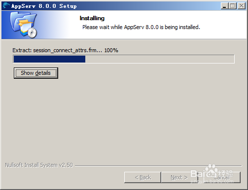 7、下一步后开始自动安装AppServ,最后点击Finish后,AppServ会自动启动APACHE和MYSQL服务, 建议开机时自动启动。