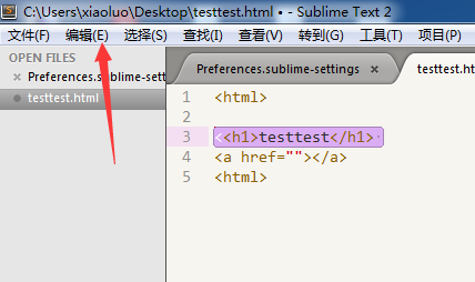 3、代码选中完成之后,进行点击菜单中的“编辑“”的选项。