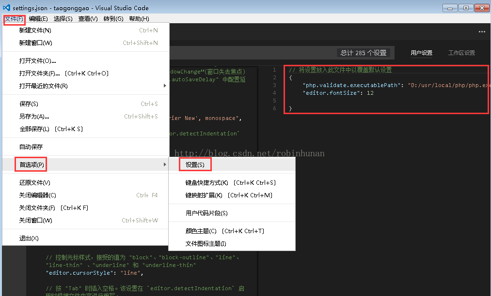 弹出下面窗口,然后将 "php.validate.executablePath": "D:/usr/local/php.exe" 添加进去