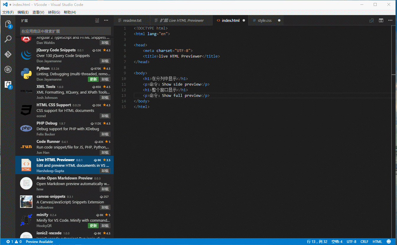 live HTML Previewer——html文件运行预览
