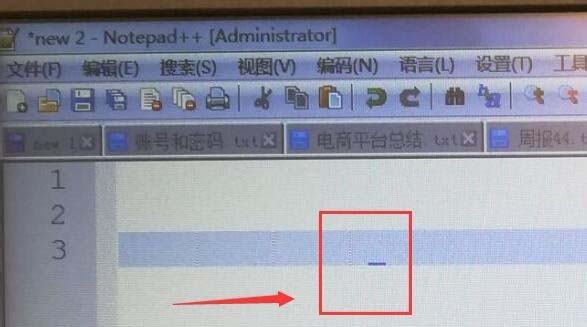 2、双击打开notepad++,如下图所示,此时我们发现光标是下划线的形式;