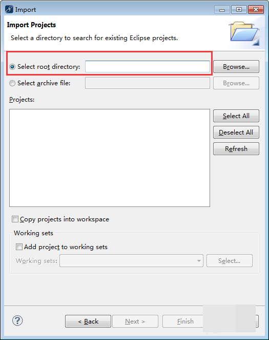 4、在弹出的二级窗体中,选择Existing Projects into Workespace