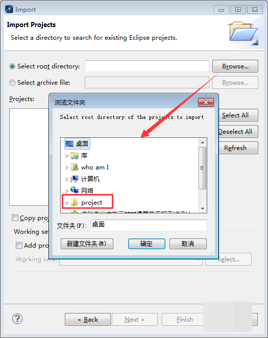 6、继续在弹出的窗体中选择Browse,选择已经准备的项目