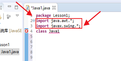 3、第三然后在class类的上面打入两行代码。分别是imports java.awt.*和imports javax.swing.*。