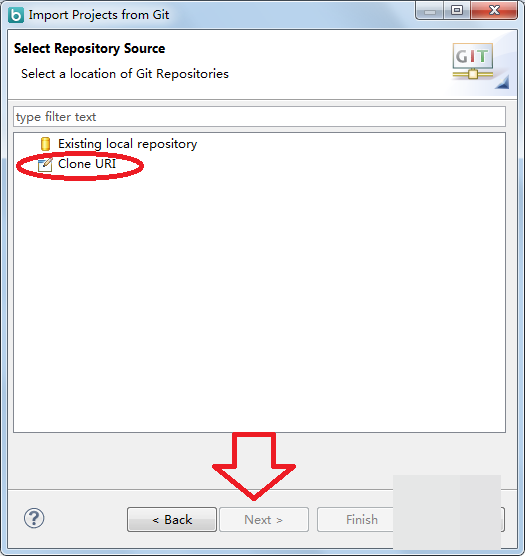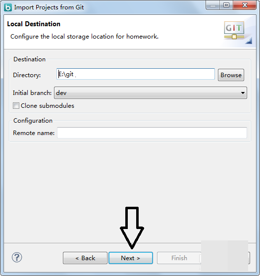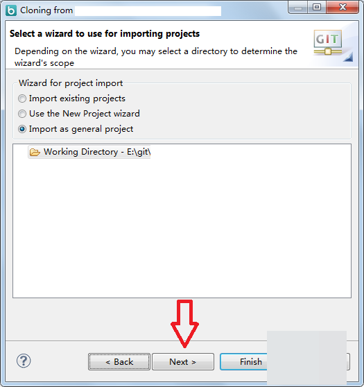 3、点击下一步进入到项目导入的方式,是导入本机已经存在的git项目还是导入新的git项目,如图选择导入新的,另外的是本地已存在的