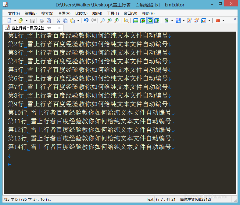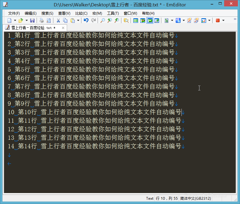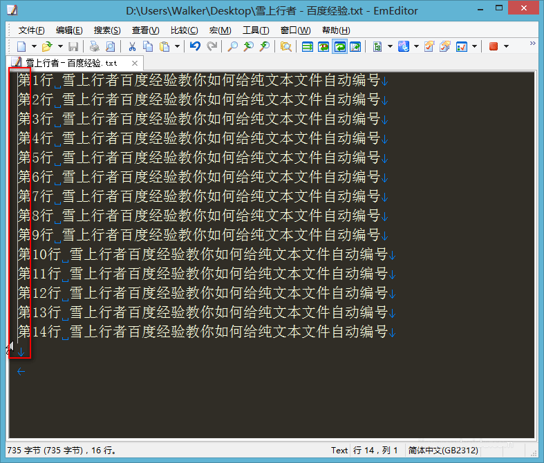 EmEditor如何给纯文本文件每行前端加上自动编号?