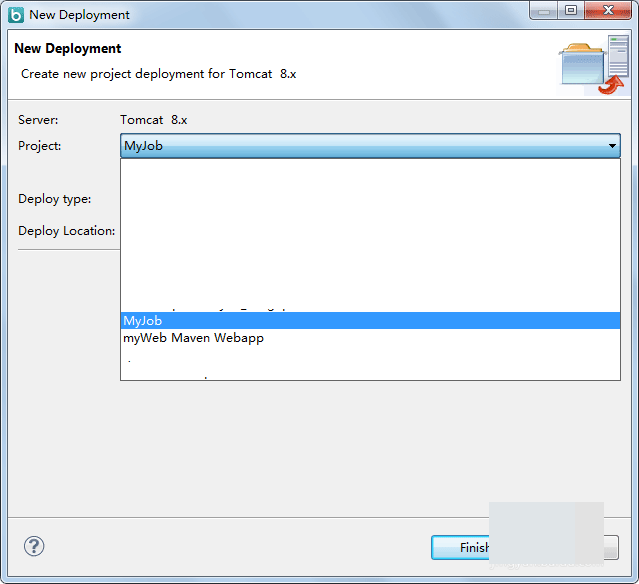 3、点击Add Deployment...,进入到New Deployment页面,这里有个Project的下拉选择框,点击弹出下拉列表,选择要部署的项目,如图