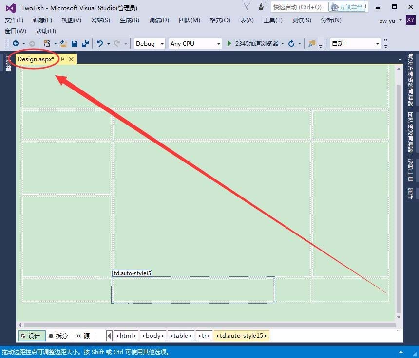 1、首先,使用Visual Studio打开一个已有的网页。