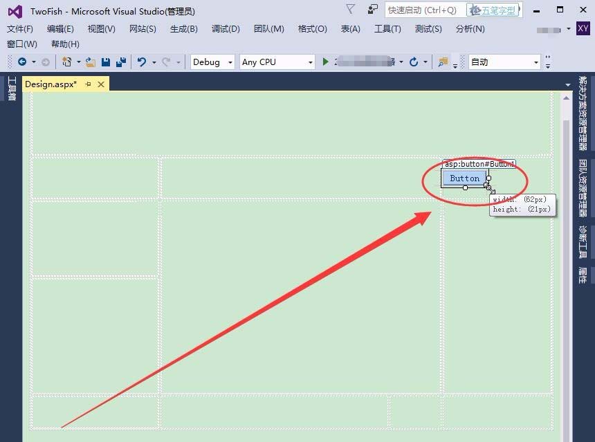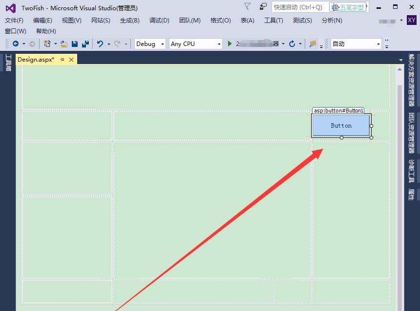3、工具箱中,选择Button控件,在网页中插入该控件。