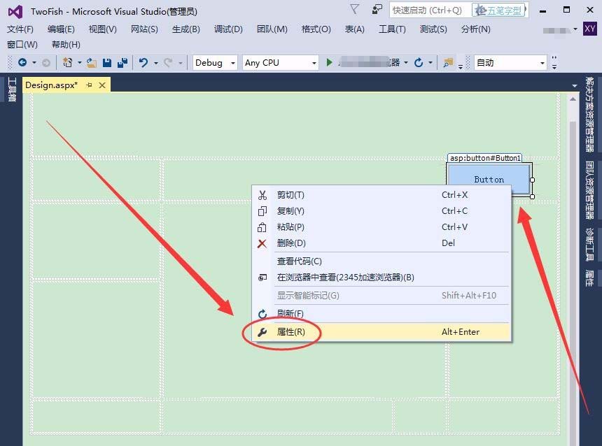 5、控件上右击,在下拉菜单中选择属性选项。