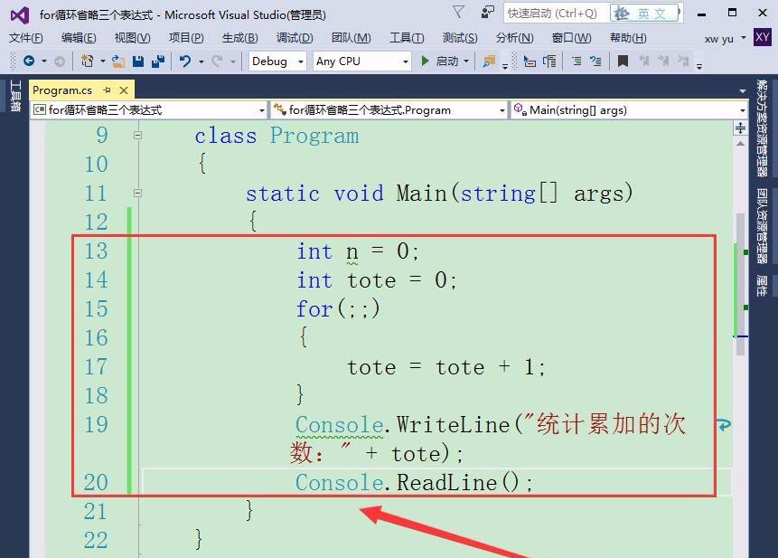 3、接着,在Visual Studio中编写一个统计累加次数的程序。