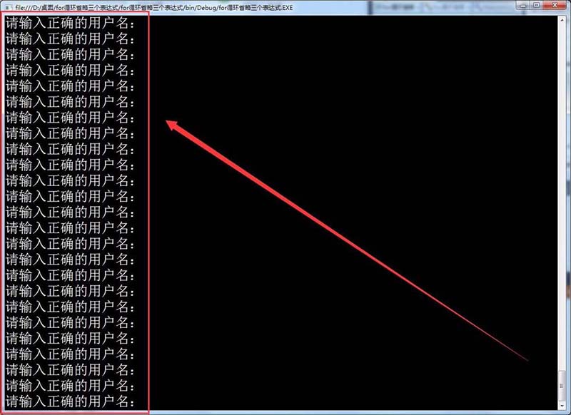 8、运行程序,在窗体中始终输出请输入正确的用户名,达到循环输入数据的效果。
