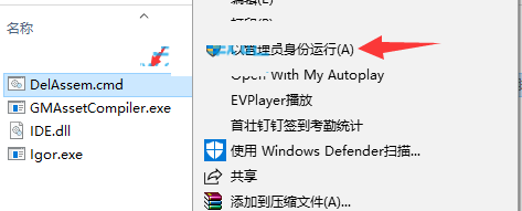 9、在Crack文件夹中找到DelAssem.cmd,右键以管理员身份运行