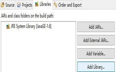 点击Build Path,点击Configure Build Path,然后会跳出来一个Libraries窗口,点击右边第四个Add Library