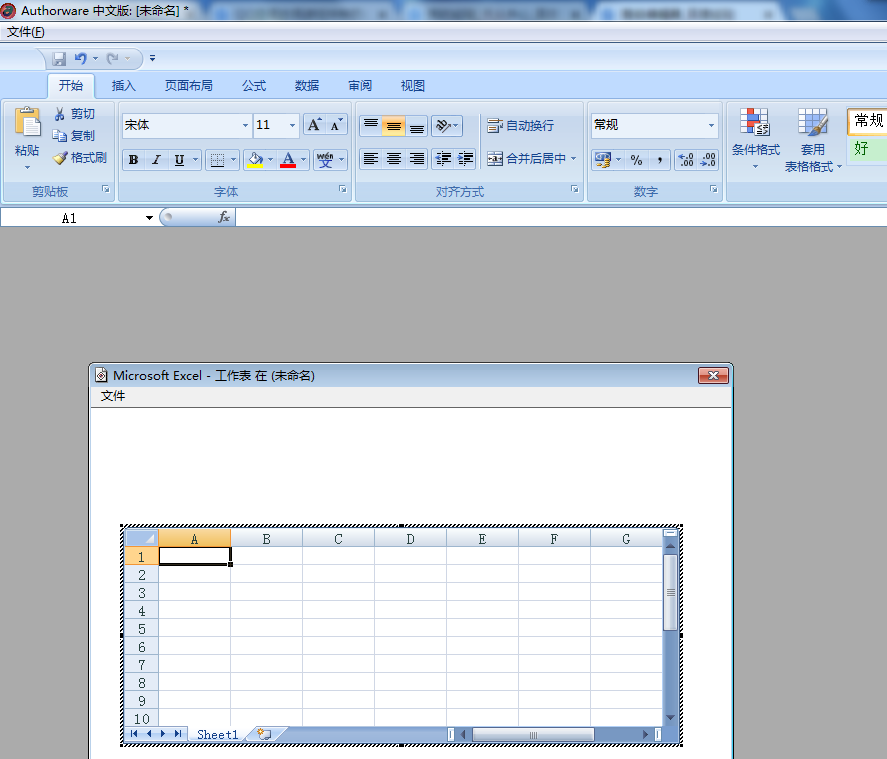 6、Authorware就成功地调取了Excel,如下图;