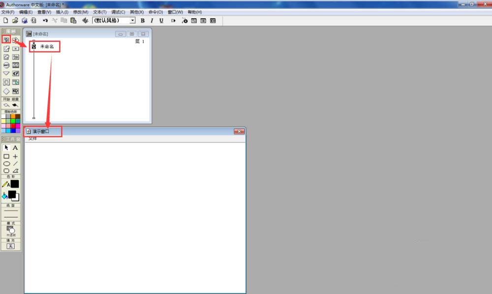 3、接着出现的就是Authorwar的程序设计窗口了;