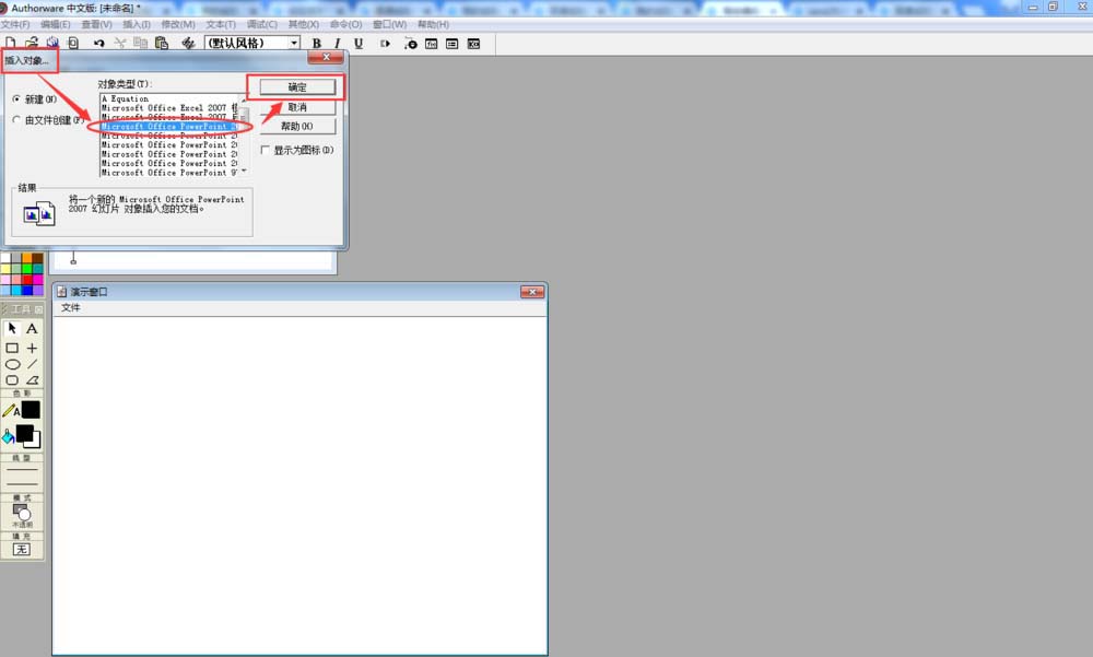 7、我们就在Authorwar中成功调用了Powerpoint程序,可以根据自己的需要在Authorware中插入幻灯片了。
