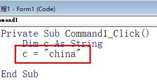 2、然后我们输入Dim c as string。