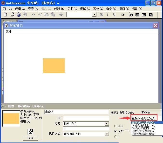 7、双击运动图标,点一下绘制的矩形,确定移动的对象;