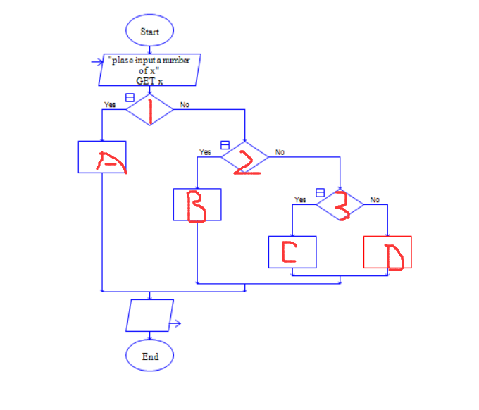 2、依次添加 输入 选择 赋值 选择 赋值 选择 赋值 赋值 符号到流程图,添加完成后如图所示。