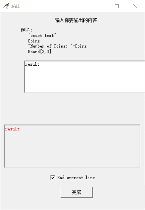 6、在输出框输入 result 点击完成 最终结果如下图。