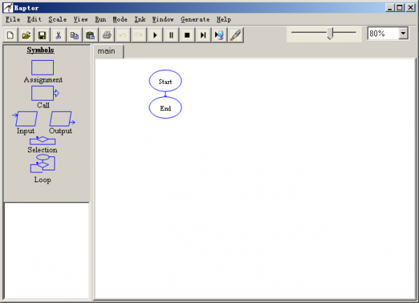 2、依次在 Start 和 End之间添加 输出 选择 赋值 赋值 输出 符号。添加完后如图所示