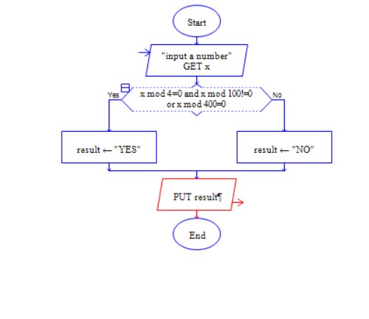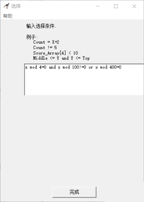 4、双击判断框 输入 x mod 4=0 and x mod 100!=0 or x mod 400=0