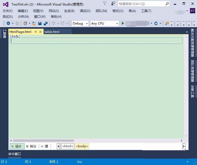 1、打开Visual Studio,新建一个html网页。