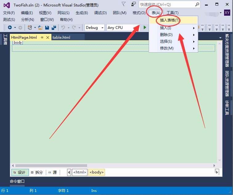 2、单击表菜单,选择插入表格选项。