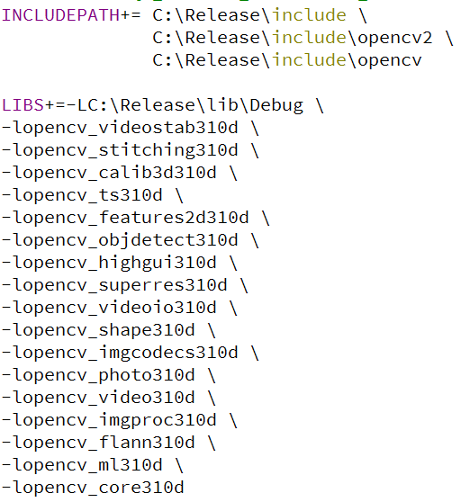 然后在Qt工程的.pro文件中写入