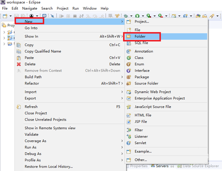 1、我们首先要下载好我们需要的json包,然后我们右击项目,选择“new”,点击“folder”。