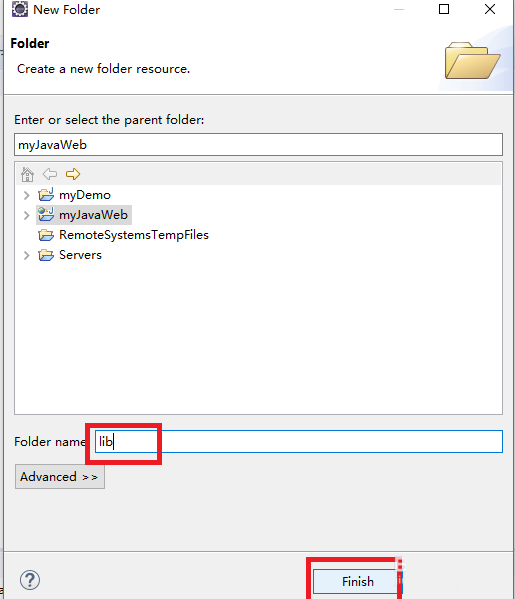 2、点击folder后,我们填写一下folder name,然后点击finish,我们就新建好了一个新的文件夹。