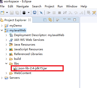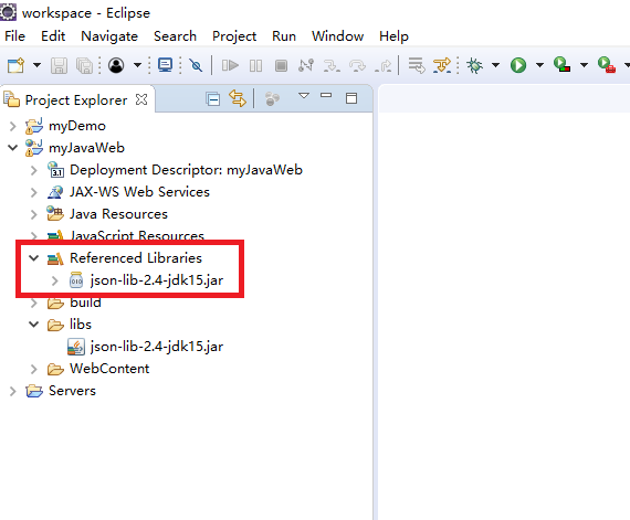 5、此时我们可以在referenced libraries中看到jar包,此时我们的json就导入完成了。