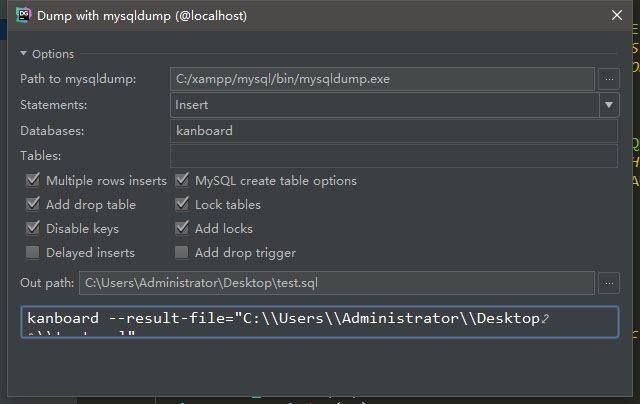 Tables需要导出的表(不可选择,默认当前右键选中的)