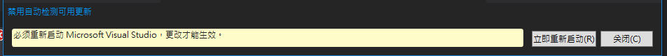 5、在原本该输出错误的位置会出现以下提示,点击重启VS之后就可以了。