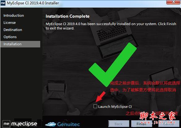 6、安装完成,去勾选运行选项,点击finish退出向导