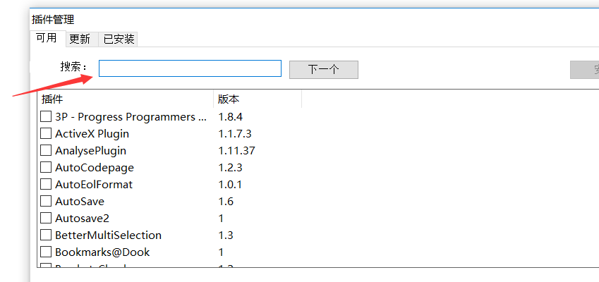 3、在这里输入搜索“NppFTP”,找到之后点左上角的“安装”