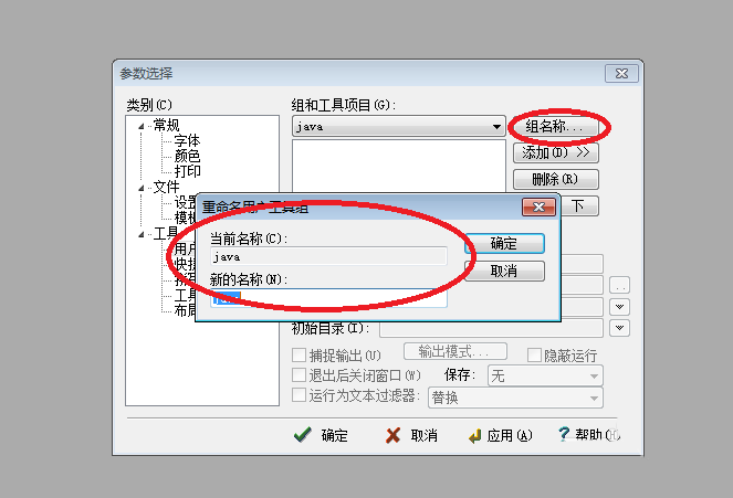 2、在用户配置工具中,点击组名称,这里我们以Java为例。