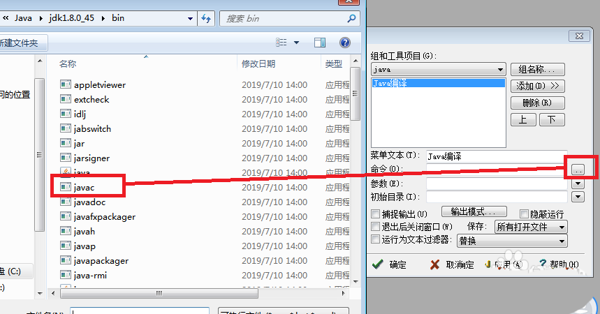 7、最后,选择配置文件的保存的位置,这里我们直接选择当前目录就可以了,同时别忘了将捕捉输出选项的对勾打上,保存之后,就可以在工具中查看我们的调用的外部程序了。