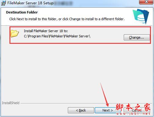 6、选择安装路径,点击change自定义路径,一般默认C:\Program Files\FileMaker\FileMaker Server\