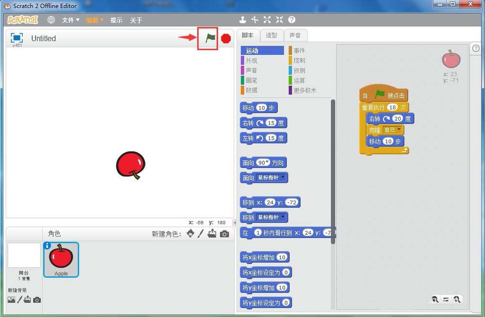 6、在scratch中创建了一个苹果角色;